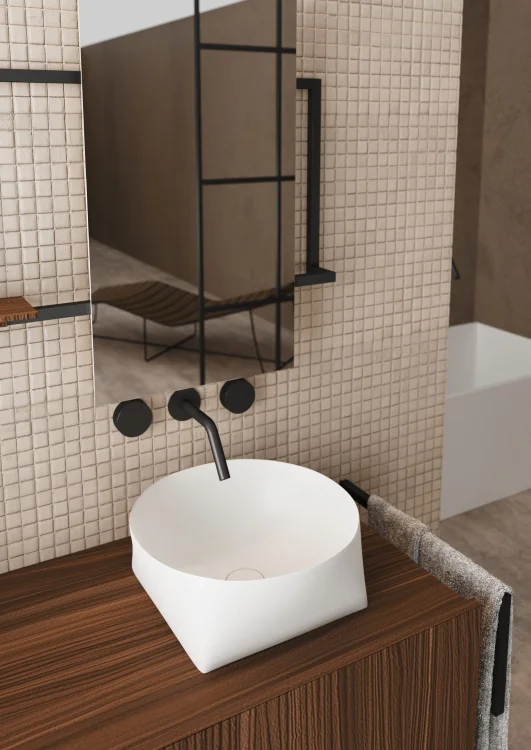 Le linee di SCARABEO YUGO sono essenziali, pure, libere da ogni superfluo. La loro sobrietà è pensata per accogliere la luce e accompagnarla, trasformando il lavabo in un elemento di quiete visiva, capace di fondersi con l’ambiente e di esprimere una calma profonda. Con SCARABEO YUGO, la geometria si fa emozione: un equilibrio perfetto tra razionalità e grazia, dove ogni curva e ogni spigolo trovano il loro spazio, come in un gesto di armonia senza tempo.