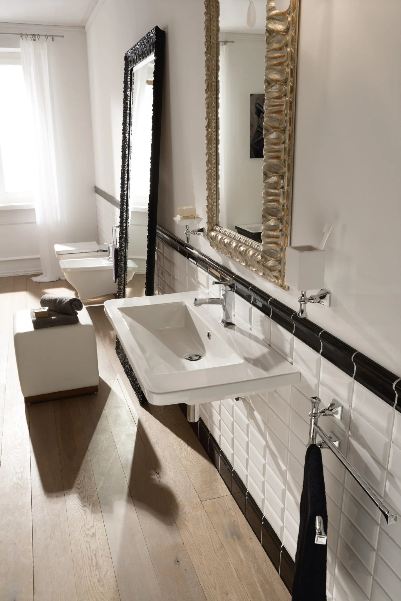 Il vaso a terra, dalle dimensioni contenute, con rivestimento interno bianco e con una finitura esterna argento, puรฒ trovare collocazione in qualsiasi ambientazione, abbinato al bidet della stessa collezione e arredi ricercati, come ad esempio lavabi appoggiati su top in marmo lucidi o basi cassettiere laccate, rappresenta una valida idea per dare vita a un bagno contemporaneo e di grande impatto scenico. Obiettivo che si puรฒ raggiungere anche attraverso unโaccurata scelta dei pavimenti e dei rivestimenti, che devono essere in tonalitร idonee a mettere in risalto i sanitari Butterfly.