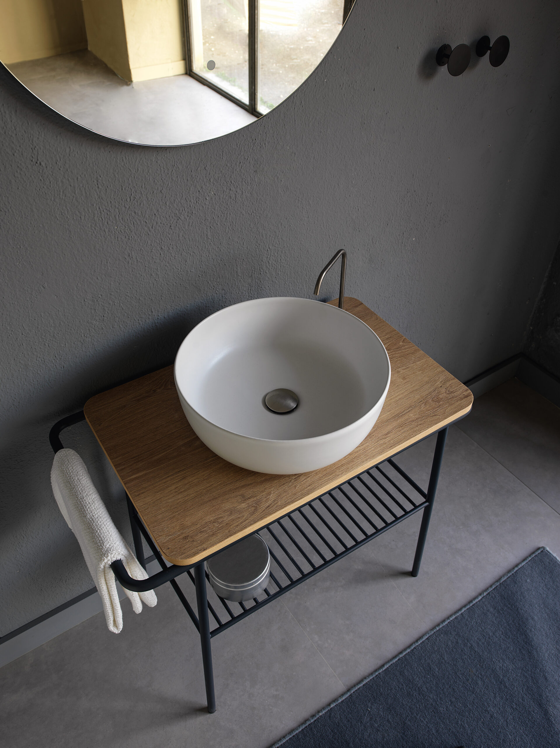 Il lavabo 71×43 cm con le sue dimensioni compatte si presta per rappresentare l’elemento distintivo del bagno e caratterizzarlo in modo inedito. Un arredo di ispirazione urban, che completato con rubinetteria a muro e uno specchio particolare, come quello rotondo o rettangolare della collezione Fuji, consente di dare un’identità contemporanea ed eclettica all’ambiente. Ideale da usare come lavamani, può essere installato sia in versione sospesa che appoggiato su una base cassettiera o una consolle.
