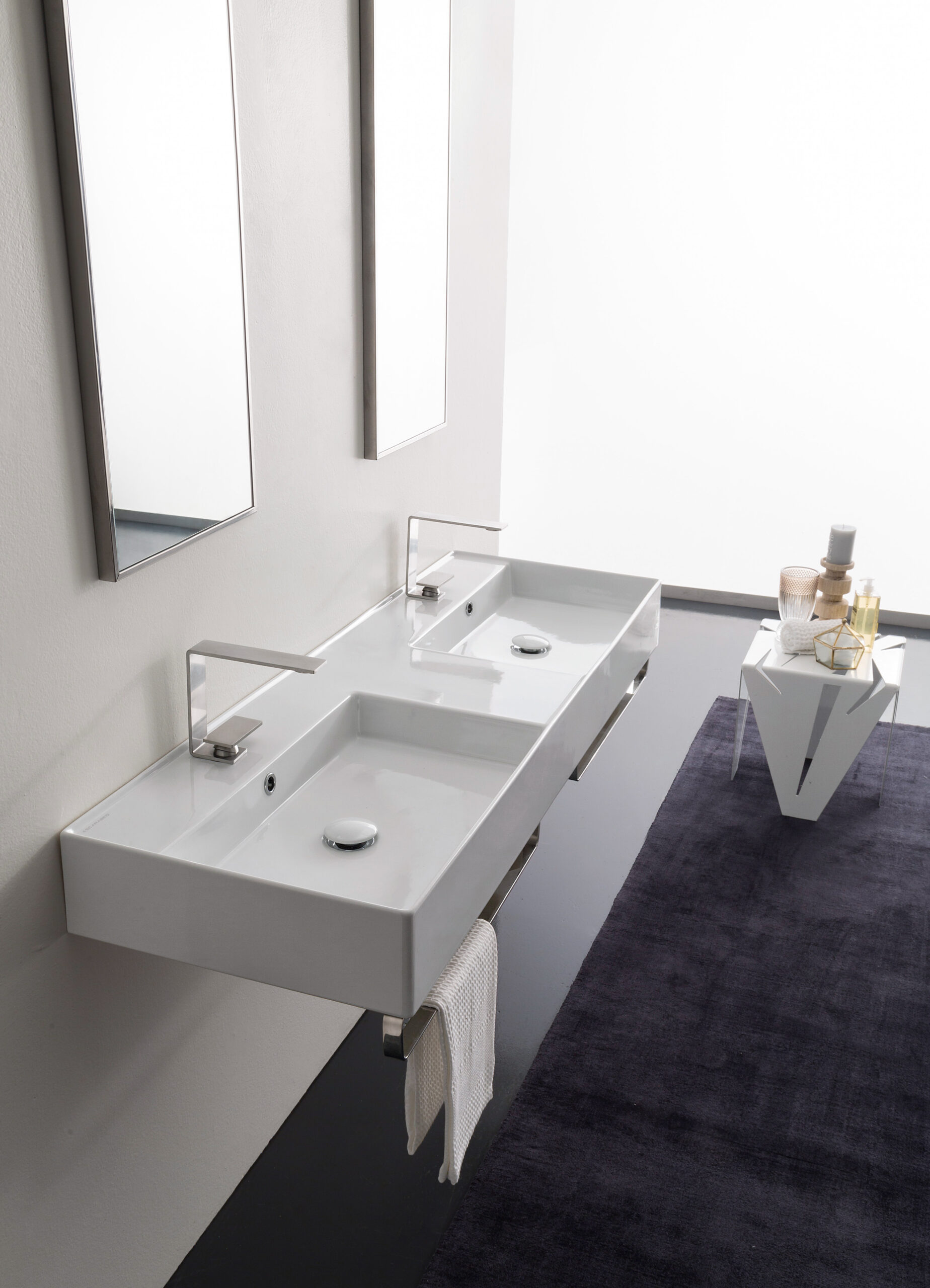 Il lavabo è concepito per attirare lo sguardo, occupando al tempo stesso poco spazio, si distingue per il design minimalista e per il lusso sobrio ed essenziale. Ideale per gli ambienti in stile moderno e contemporaneo, regala un particolare tocco di classe anche ai locali di stampo classico. Il sanitario è progettato per rubinetteria monoforo, ma all’occorrenza può essere dotato di tre fori oppure esserne completamente privo. Abbinato a qualsiasi tipo di rubinetto in ottone o acciaio inox si accentua la lucentezza della ceramica; il quadro complessivo suggerisce ordine, pulizia, cura per i dettagli. I materiali di costruzione sono trattati in modo da risultare resistenti a fattori esterni quali l’umidità, l’acqua e gli agenti chimici, ai quali si mostreranno poco sensibili anche con il passare del tempo.